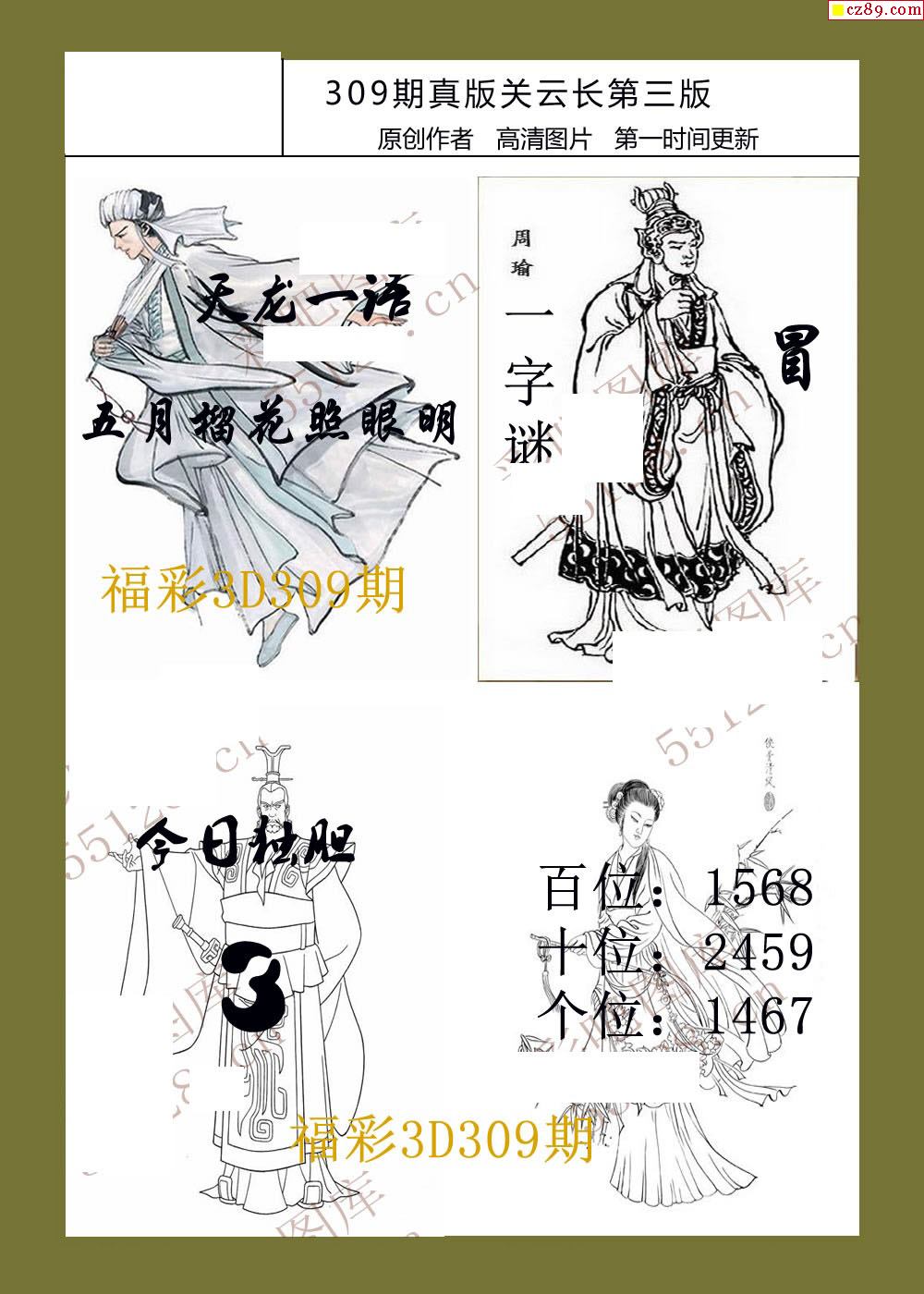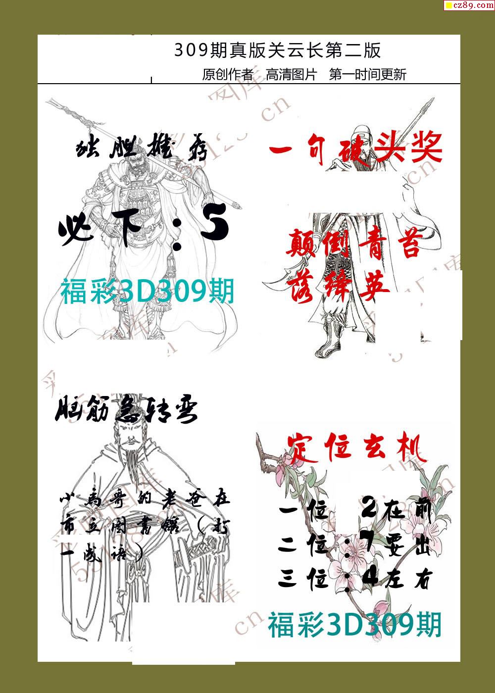 25年309期福彩3d真版关云长图谜